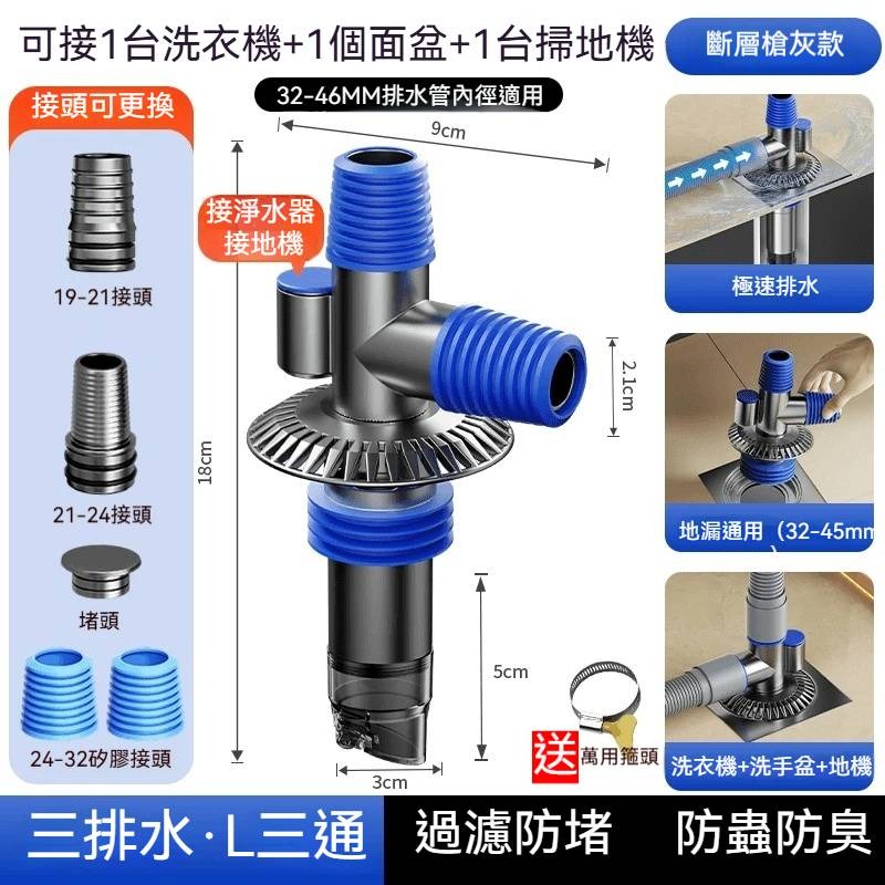 [2]「三通設計:一鍵解決傳統地漏所有痛點」老屋改造|新房裝修|租房升級 2入組-NT$1198