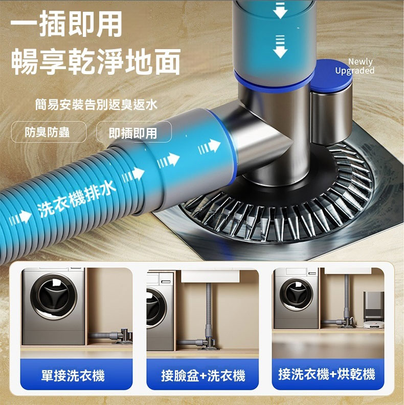 厭倦地漏返臭、積水倒灌的煩惱:專利三通設計,一鍵解決傳統地漏所有痛點,雙重防臭閥,快速排水防倒灌,多介面通用,安裝簡易免施工