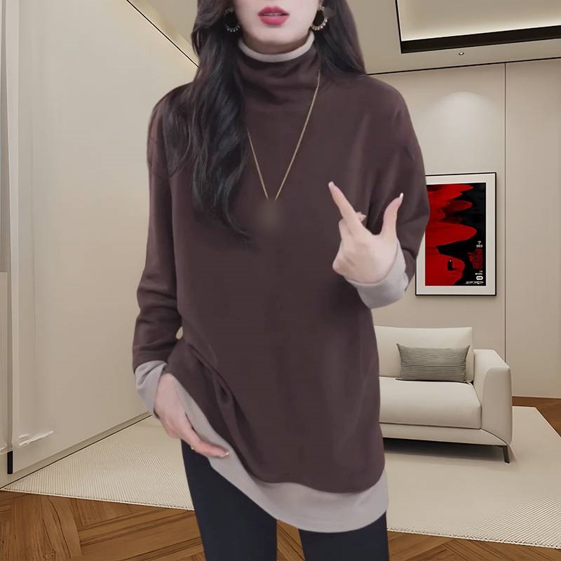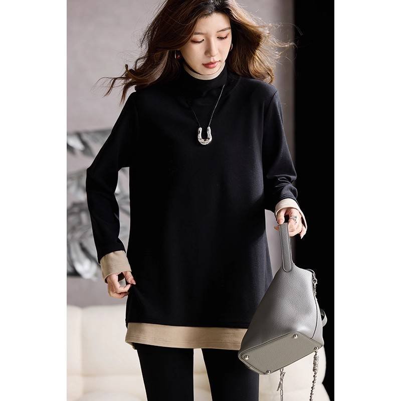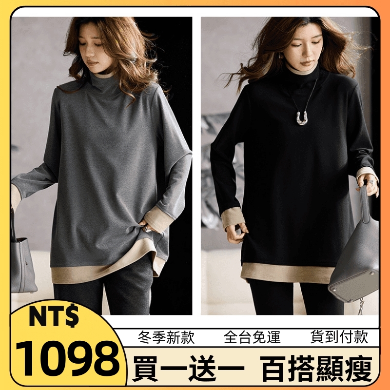 【買一送一】姐妹們!這款假兩件半高領打底衫絕了!雙面澳絨巨保暖,堆堆領軟而不塌,搭羽絨服、大衣都超有造型感!