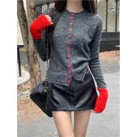 煩衣服設計普通 手腕粗顯壯?加寬螺紋鎖邊針織衫 元旦聚會穿超韓係 灰紅撞色針織衫 正肩利落 約會拍照超亮眼