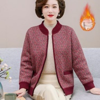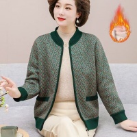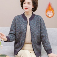 秋裝新款老年人針織衫女媽媽加絨加厚老婆婆條紋上衣